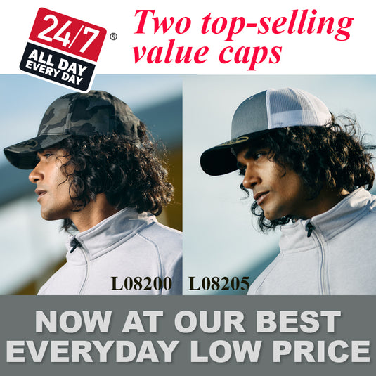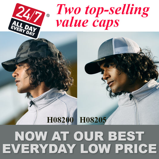 24/7 All Day Every Day / YP Classics Snap Back Trucker Cap. Front Panels - 74% Polyester, 26% Cotton twill. Mid and Back Panels - 100% Polyester premium mesh, 6-panel, matching 7-position adjus...