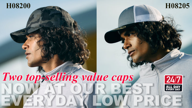 24/7 All Day Every Day / YP Classics 5-Panel Flat Peak Snap Back Truck Cap. Front Panel - 74% Polyester, 26% Cotton twill, Mid and Back Panels - 100% polyester premium mesh. 5-Panl, matching 7-pos...