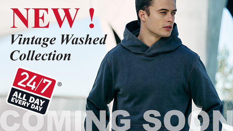 240 gsm - 7 oz./ yd² - 12 oz./lin. yd. Garment dyed 100% cotton jersey with vintage wash, Rib knit neckline with spandex for shape retention. Jersey knit back neck and shoulder tape. Tear away l...