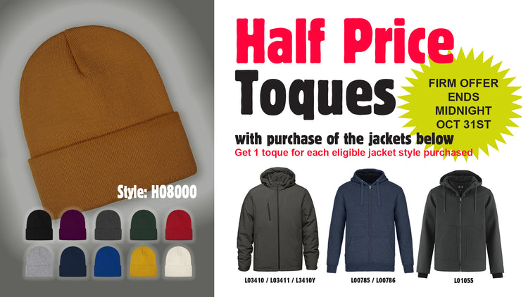 100% Acrylic Roll Cuff Design – Adjustable Cuff shown as 3”. Stretchy premium weight with superior shape retention. Tear away label.