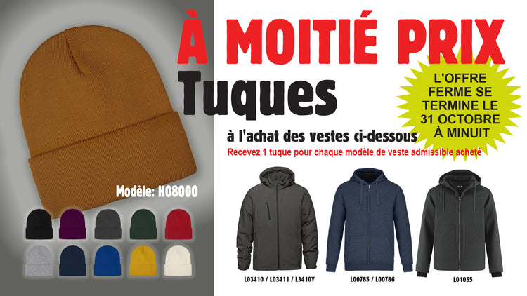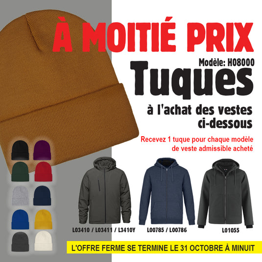 H08002 - Blaze - Tuque en Tricot à Ourlet Replié (COULEURS INTENSE)
