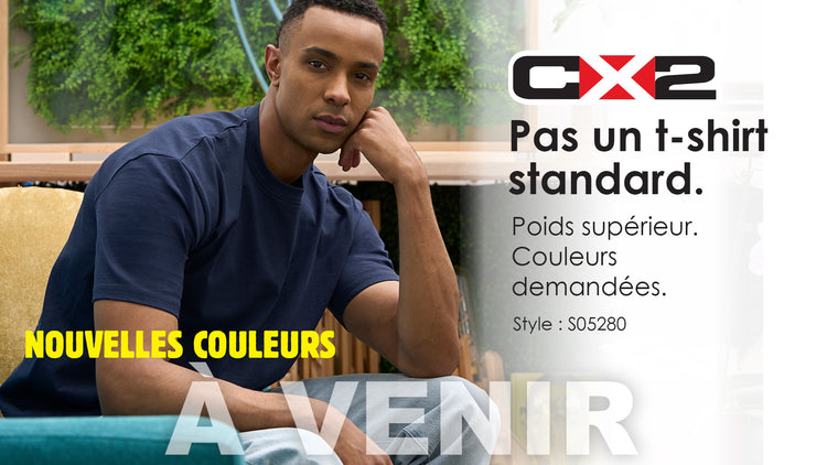160 g/m2 “ 4.7 oz./ yd2 “ 8 oz./vg lin. (Couleurs unies) 100% jersey de coton (Couleurs chinées) 65% coton, 35% jersey de polyester. Col en tricot cételé avec élasthanne pour garder la forme. Ruban...